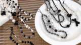 ブラックを基調にビーズを繋げた落下防止ストラップです。
