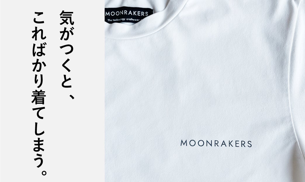 「MOONRAKERS」が昨年5月にローンチしたJAXA(国立研究開発法人宇宙航空研究開発機構)・東レ共同開発の宇宙技術も搭載した最新の先端素材使用商品「MOON-TECH®(ムーンテック®)」シリーズは、その「過剰なほどの機能性」、そして「着てない時でさえ気持ちいい利便性」がユーザーからの高い支持につながり、発売わずか1年で累計販売1万枚を達成するという大きな反響を呼んでいます。