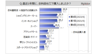 脱毛 【最新】【衣料品の購入に関する調査】衣料品購入者が直近1年間に購入した場所は「衣料量販店」が約45%、「ショッピングセンター」「インターネットショップ」が各4割弱 「スーパー」「百貨店・デパート」は、2018年調査以降減少傾向 ... 2023.07.22 脱毛